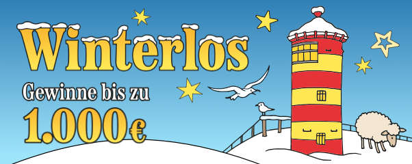 Das 1 € Rubbellos „Winterlos“ mit drei Höchstgewinnen von je 1.000 €. Die Serie umfasst 1.859.000 Lose zu einem Preis von je 1 € und beinhaltet zusätzlich 169.000 Freilose.